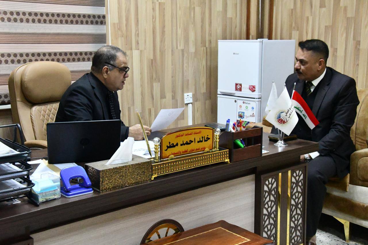 أجرى مساعد رئيس الجامعة للشؤون العلمية الأستاذ الدكتور حسن حسين إبراهيم جولة علمية تضمنت زيارة قسم شؤون الطلبة في رئاسة الجامعة، حيث اطلع على سير العمل والخدمات المقدمة للطلبة، مؤكداً أهمية تطوير العمل الإداري وتقديم أفضل الخدمات التي تسهم في دعم المسيرة التعليمية وتلبية احتياجات الطلبة.