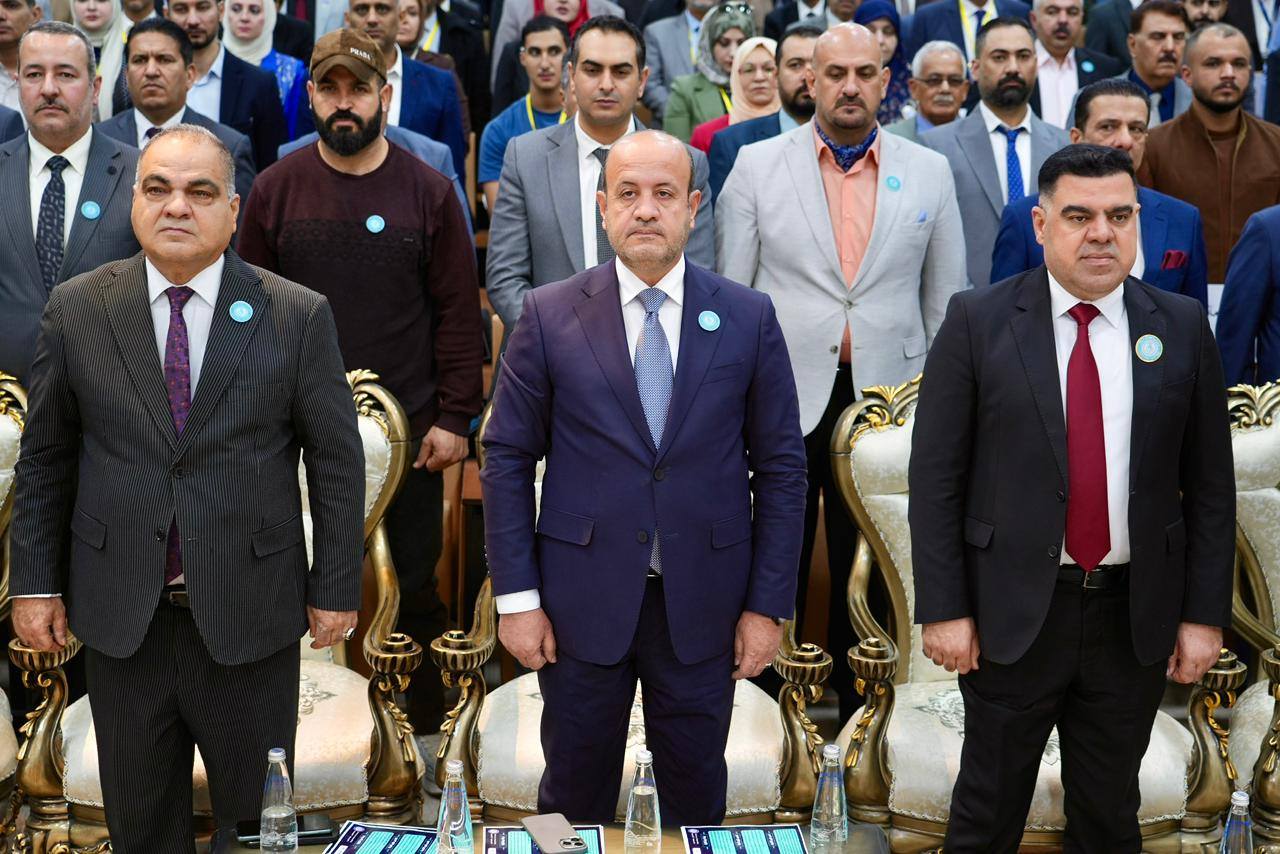 واستُهلت وقائع المؤتمر بتلاوة آيٍ من الذكر الحكيم وقراءة سورة الفاتحة على أرواح شهداء العراق، تلاها عزف النشيد الوطني العراقي ونشيد جامعة تكريت.