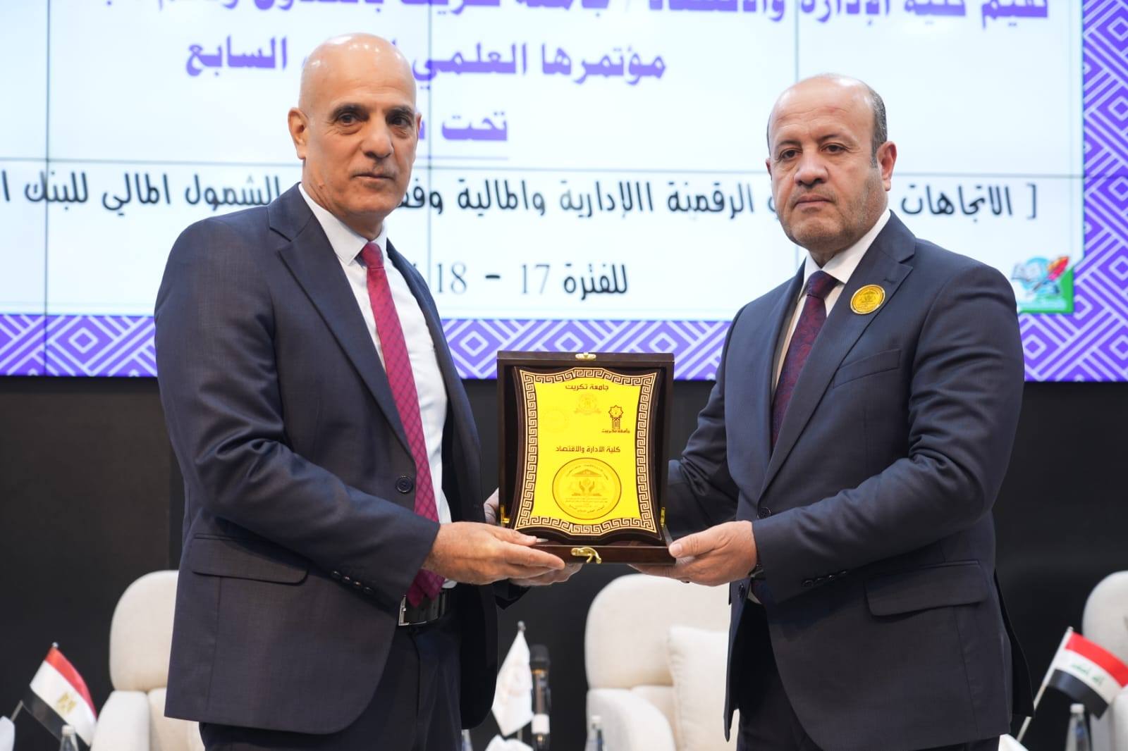 وفي ختام الجلسة الافتتاحية، جرى تكريم رئيس الجامعة والمتحدثين والضيوف بدروع المؤتمر ودروع البنك المركزي العراقي، كما تم افتتاح معرض الشمول المالي الذي نظمه البنك المركزي العراقي بالتعاون مع رابطة المصارف العراقية في باحة كلية الإدارة والاقتصاد.