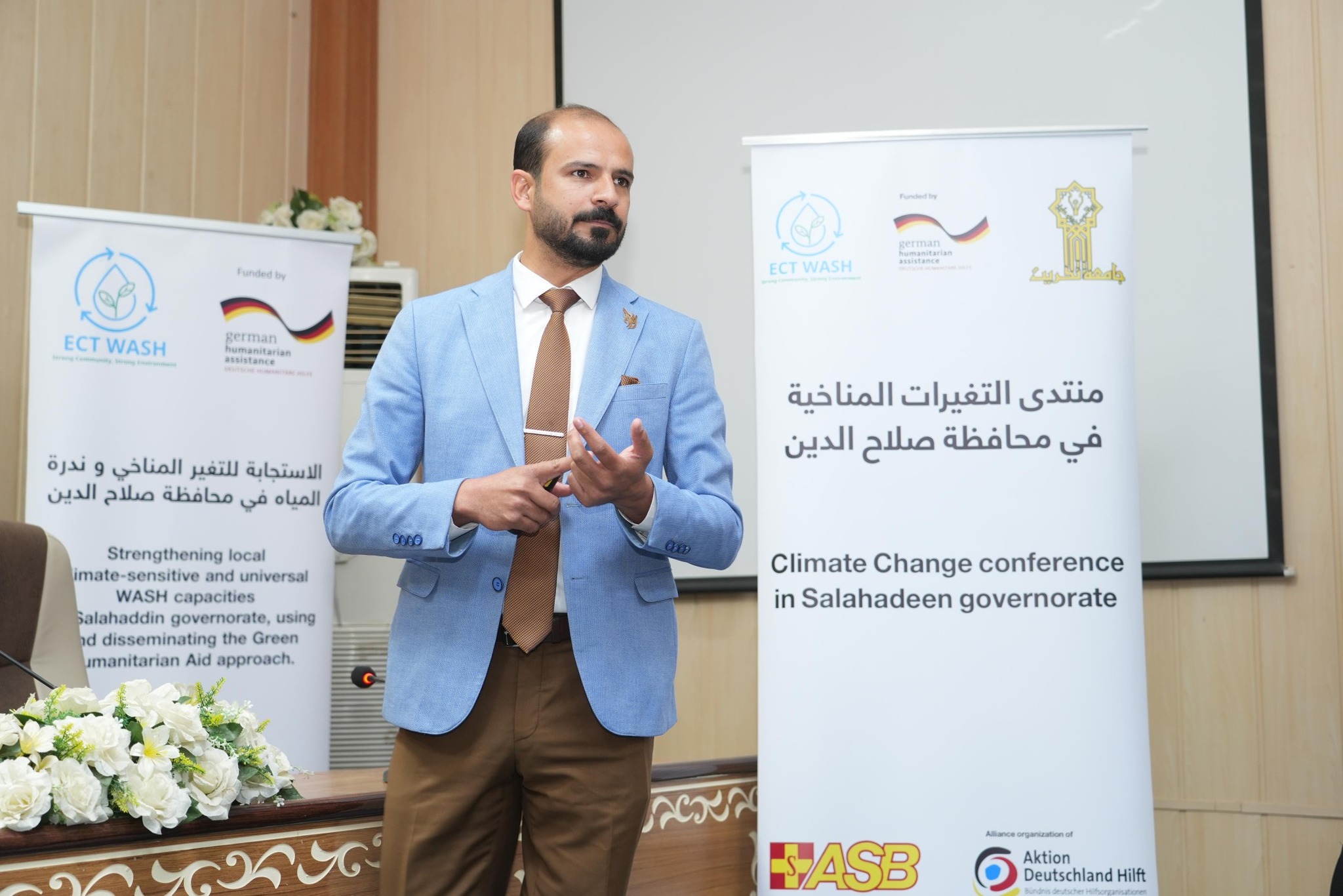 برعاية وحضور رئيس جامعة تكريت الاستاذ الدكتور وعد محمود رؤوف وبإشراف عميد كلية الزراعة الاستاذ المساعد الدكتور سامي خضر سعيد وبالتعاون مع منظمة رابطة عمال سامريتر المانيا ASB الممولة من الوزارة الاتحادية الألمانية للشؤون الخارجية GFFO ومن اجل متابعة مشروع التغير المناخي وندرة المياه في محافظة صلاح الدين اقيم صباح اليوم الاربعاء الموافق 23/4/2025 منتدى التغيرات المناخية في محافظة صلاح الدين بحضور اكثر من 65 من موظفي دوائر المحافظة الماء، والموارد المائية والبيئة والبلدية والزراعة والصحة بالاضافة الى تدريسيين وباحثين من جامعة تكريت