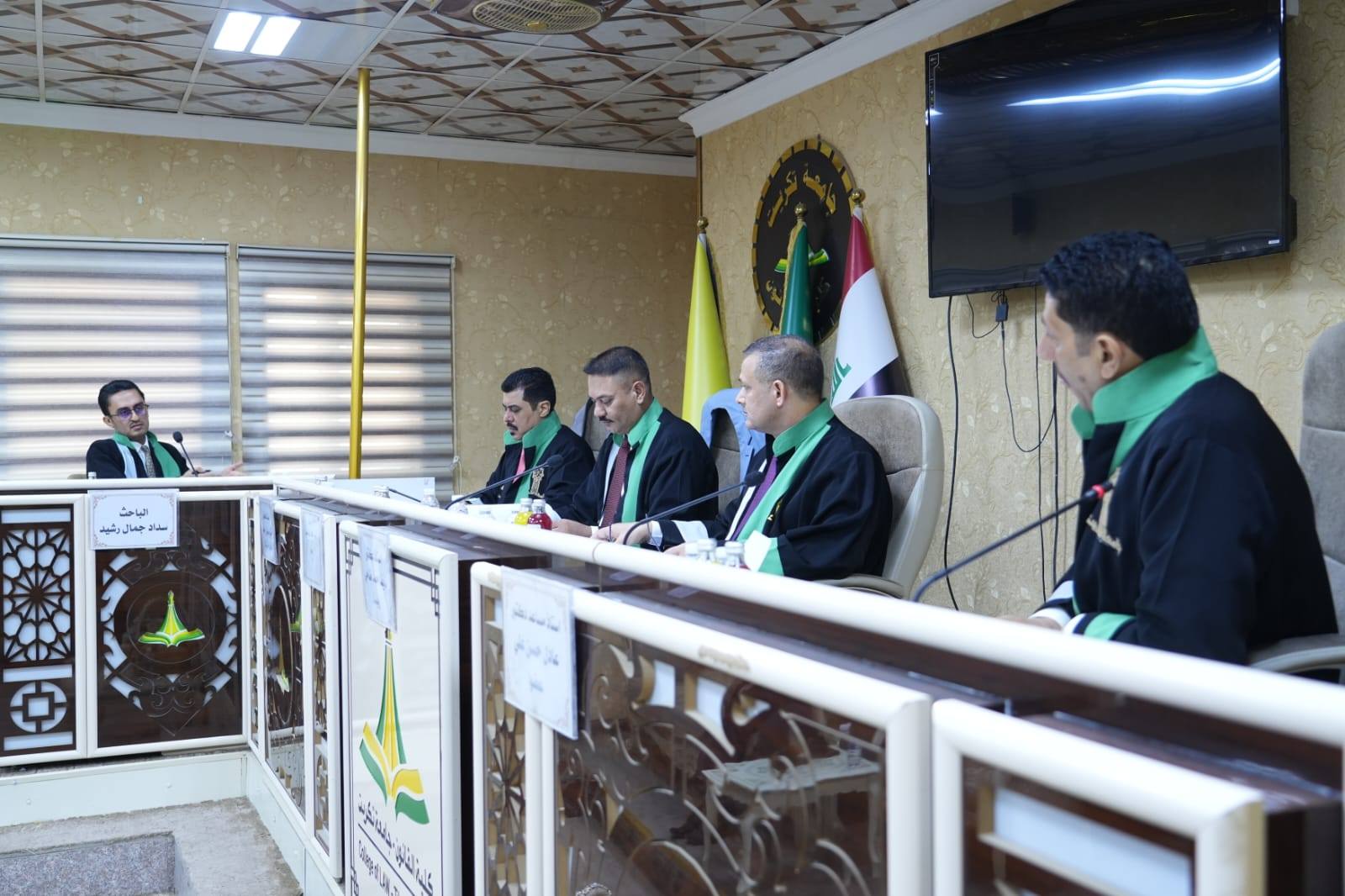 وخلال حضوره، أكد رئيس الجامعة حرص رئاسة جامعة تكريت على دعم برامج الدراسات العليا وتعزيز البحث العلمي، مشيراً إلى أن الجامعة تسعى إلى تهيئة بيئة أكاديمية متكاملة تتيح للباحثين فرصة الإبداع والإسهام في معالجة القضايا العلمية والقانونية التي تمس المجتمع وتواكب المتغيرات الدولية.
