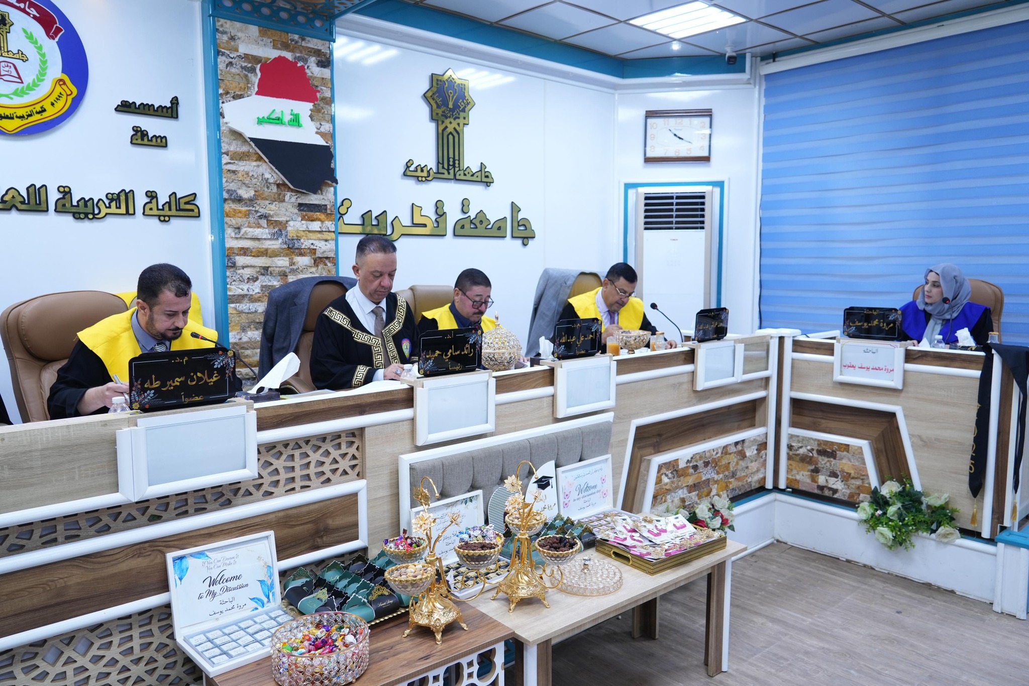 حضر الأستاذ الدكتور وعد محمود رؤوف رئيس جامعة تكريت، مناقشة رسالة الماجستير في كلية التربية للعلوم الإنسانية – قسم التاريخ، للطالبة مروة محمد يوسف، والتي جاءت بعنوان: “أوضاع اليهود الاقتصادية والسياسية في اليمن (1861-1967)”.