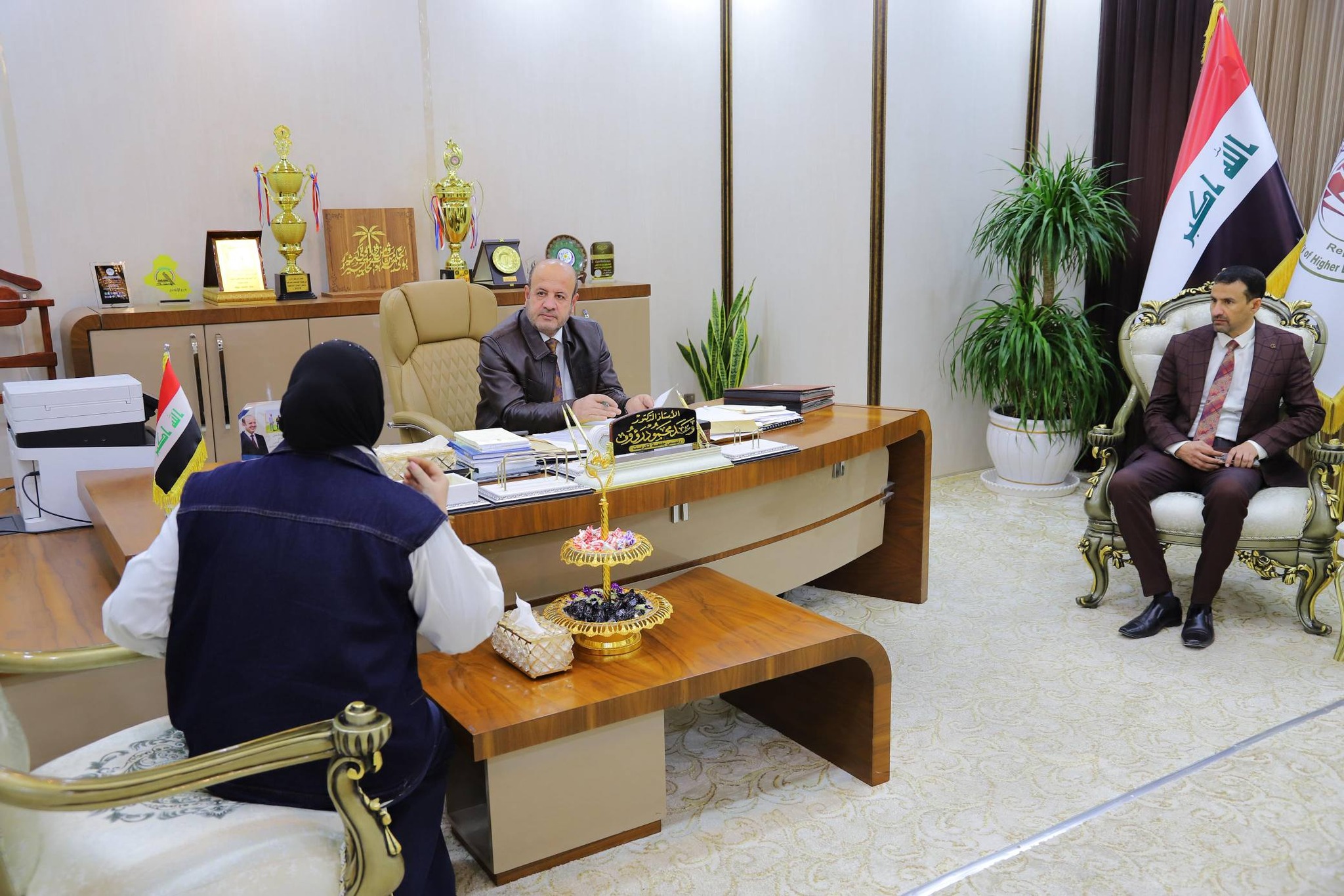 استقبل رئيس جامعة تكريت الأستاذ الدكتور وعد محمود رؤوف، عدداً من المنتسبين والمواطنين وطلبة الجامعة، وذلك ضمن برنامج المقابلات الأسبوعية الذي يخصصه للاطلاع على طلباتهم ومتابعة شؤونهم.