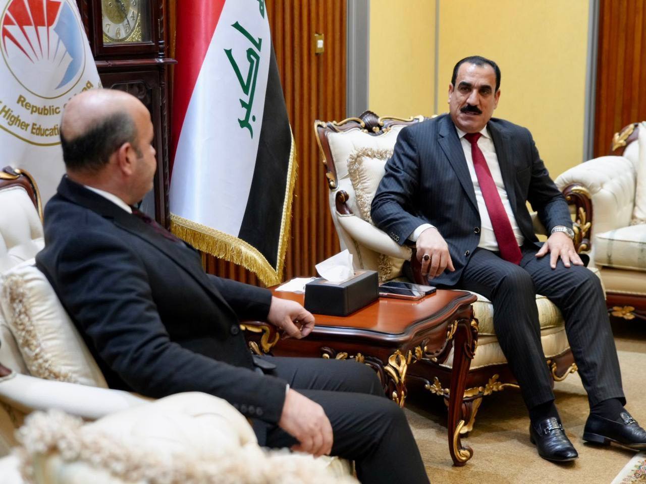 استقبل الأستاذ الدكتور عدنان إبراهيم عبد الجميلي، وكيل وزارة التعليم العالي والبحث العلمي للشؤون الإدارية، في مكتبه صباح يوم الأربعاء الموافق 24 كانون الأول الجاري، الأستاذ الدكتور وعد محمود رؤوف رئيس جامعة تكريت، وذلك في مقر الوزارة، لبحث سُبل تطوير الجامعة ودعم مسيرة نهضتها الأكاديمية والعلمية والإدارية.